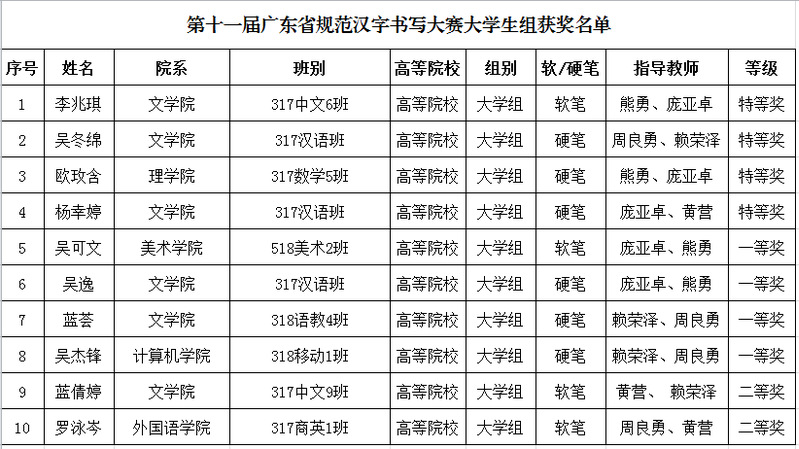 經過省專家嚴格的初評、復評和終評。我校選送的10名學生全部獲獎。其中4名學生獲特等獎,4名學生獲一等獎,2名學生獲二等獎!同時,我校也是全省參賽高校中獲特等獎最多的高校。