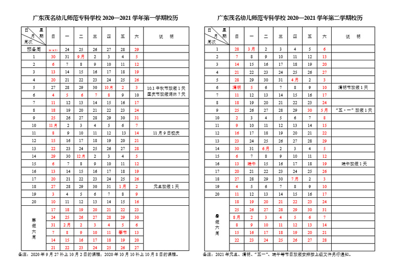 廣東茂名幼兒師范專科學校2020-2021學年校歷.doc