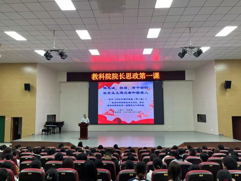 為增強學生干部履職能力,強化責任意識,明確工作任務,2025年4月10日,教育科學學院黨總支部(以下簡稱“教科院黨總支”)書記古超強在茂名校區(qū)聞韶苑講授了題為“做忠誠、擔當、有干勁的社會主義建設者和接班人”的思政第一課。教科院輔導員和學院學生干部220人參加了學習。