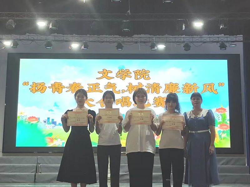 在頒獎(jiǎng)環(huán)節(jié),獲獎(jiǎng)班級(jí)和指揮收獲榮譽(yù),現(xiàn)場(chǎng)掌聲雷動(dòng)。此次合唱比賽,不僅是一場(chǎng)音樂(lè)的較量,更是文學(xué)院學(xué)子青春風(fēng)采與精神風(fēng)貌的展示。同學(xué)們用歌聲唱響了青春正氣,樹(shù)立了清廉新風(fēng)。在未來(lái)的日子里,他們也將帶著這份信念,在青春的道路上奮勇前行,書寫更加精彩的篇章。