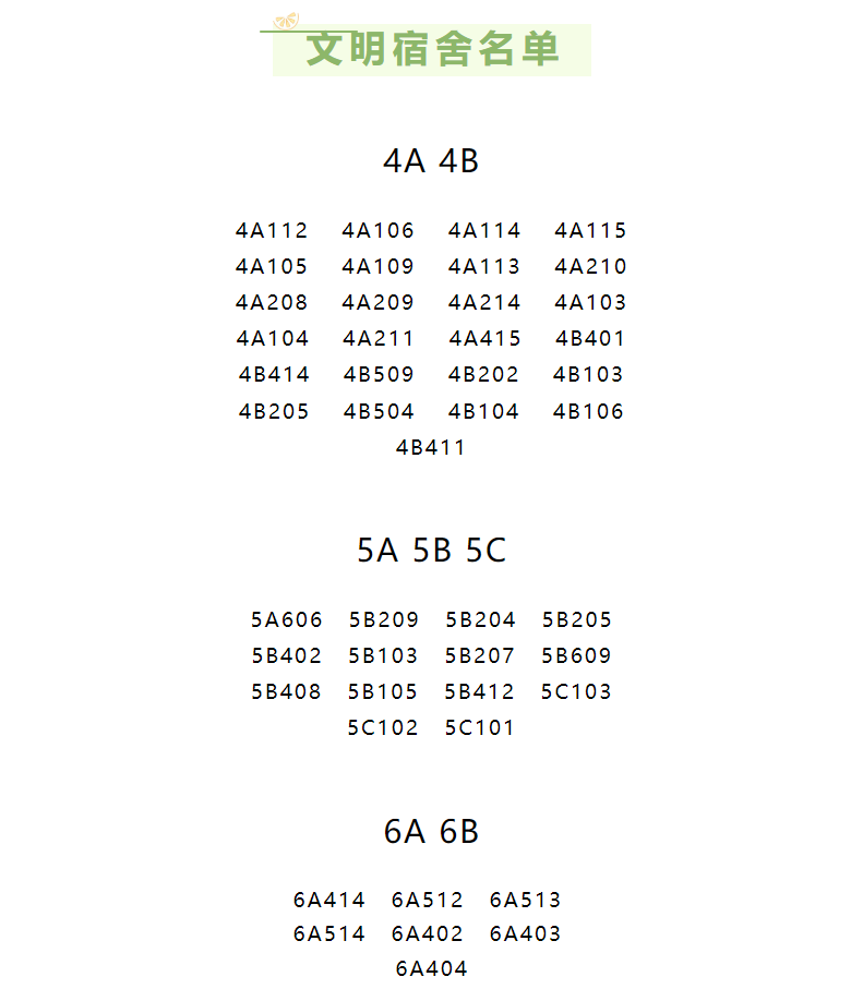 青春“宿”說(shuō)文明,五月“寓”見(jiàn)美好!為營(yíng)造整潔、文明、和諧的宿舍環(huán)境,激勵(lì)學(xué)生共建學(xué)風(fēng)優(yōu)良、安全有序的社區(qū)文化,2025年5月21日,計(jì)算機(jī)學(xué)院學(xué)生會(huì)對(duì)全體宿舍開展了“5月文明宿舍”評(píng)比活動(dòng)。文明宿舍具體名單如下:
