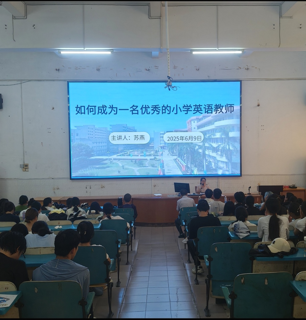 2025年6月9日,外國語學(xué)院邀請高州市文明路小學(xué)副校長、南粵優(yōu)秀教師、優(yōu)秀班主任李平和英語教研員李燕老師到高州校區(qū)開展了師范生專業(yè)成長專題講座。學(xué)院黨總支書記程昭玉,小學(xué)英語教育教研室老師和323級、324級小學(xué)英語教育專業(yè)的同學(xué)參加講座。