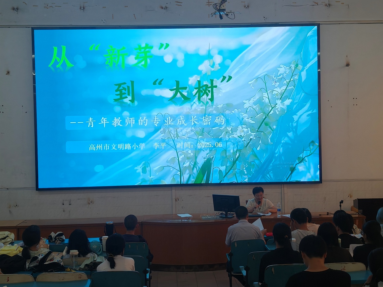 第一場講座由李平副校長主講。講座主題為:從“新芽”到“大樹”--青年教師的專業(yè)成長密碼。李平從新師之路璀璨啟程、立足課堂精雕細(xì)琢、培養(yǎng)習(xí)慣書香漸濃、聚沙成塔厚積薄發(fā)四個方面展開闡述,她指出班主任和科任老師要立班規(guī)與學(xué)科規(guī)矩并設(shè)立獎勵機制,科任老師需深諳專業(yè)基礎(chǔ)知識、打好粉筆、鋼筆、毛筆及普通話等基本功,青年老師要培養(yǎng)語言交流藝術(shù),尤其是與家長溝通及同事相處的技巧,班主任要合理安排班干部工作、關(guān)心學(xué)生學(xué)習(xí)生活并及時解決問題;同時強調(diào)書籍是人類進步的階梯,青年教師要培養(yǎng)終身學(xué)習(xí)與良好閱讀習(xí)慣,多讀專業(yè)發(fā)展書籍并博覽群書以積累學(xué)科知識,即便工作繁忙也要抽時間學(xué)習(xí)閱讀,通過書籍打破知識界限、拓展視野。