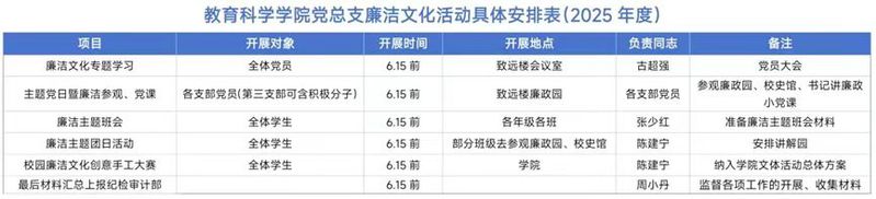 為深入貫徹落實(shí)學(xué)校紀(jì)委《關(guān)于開展2025年校園廉潔文化活動(dòng)的通知》精神要求,2025年3-6月,教育科學(xué)學(xué)院黨總支(以下簡稱“教科院黨總支”)組織開展了以“弘揚(yáng)廉潔精神,營造風(fēng)清氣正校園氛圍”為主題的系列廉潔文化教育活動(dòng)。活動(dòng)開展以來,全院師生積極參與,成效顯著。