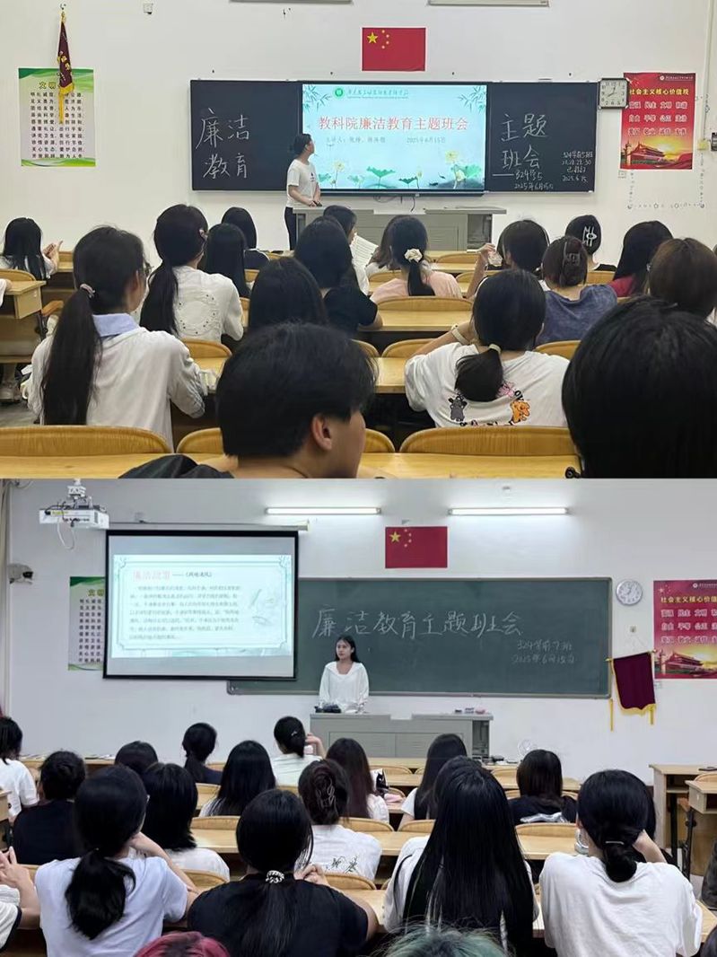 6月15日,教科院各班級在固定教室組織召開廉潔教育主題班會。班會通過 PPT 展示、視頻播放等多種形式,深入闡釋廉潔的內(nèi)涵與重要性,強(qiáng)調(diào)從古至今,廉潔一直是中華民族的傳統(tǒng)美德。無論是古代的清官廉吏,還是現(xiàn)代社會的先進(jìn)楷模,他們用實(shí)際行動(dòng)詮釋了廉潔的力量,為國家的繁榮昌盛和社會的和諧穩(wěn)定做出了巨大貢獻(xiàn)。在當(dāng)今時(shí)代,廉潔更是我們每一位學(xué)生應(yīng)當(dāng)秉持的品質(zhì),它關(guān)系到我們的個(gè)人成長、學(xué)業(yè)發(fā)展以及未來的職業(yè)生涯。