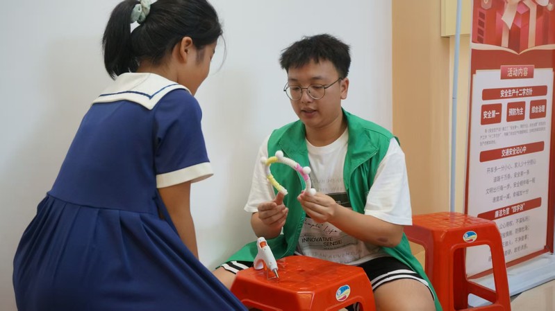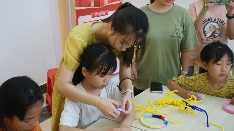 7月17日,突擊隊(duì)隊(duì)員懷揣著熱忱與期待,走進(jìn)南塘鎮(zhèn)彭村,開(kāi)啟了一場(chǎng)別開(kāi)生面的文化傳承之旅。活動(dòng)中,彭村黨群干部向孩子們逐一介紹突擊隊(duì)隊(duì)員帶來(lái)的手工作品,帶領(lǐng)大家深入探尋扭扭棒、書(shū)簽、扎染等傳統(tǒng)與創(chuàng)意結(jié)合的手工藝術(shù),細(xì)致講解每種工藝的制作方法與背后的文化意趣。