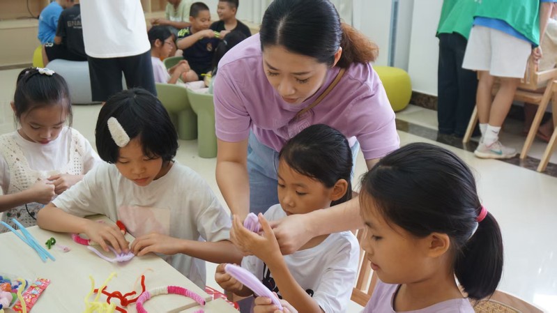 一扭一纏間,在突擊隊(duì)隊(duì)員的耐心指導(dǎo)下,彩色的扭扭棒在孩子們的小手中仿佛被注入了魔力,有的被拗成靈動(dòng)的蝴蝶,輕輕別在發(fā)簪上;有的編作小巧的花朵,瓣尖微微翹起,藏著孩子們獨(dú)有的巧思。孩子們專注的眼神里閃爍著對(duì)藝術(shù)的向往,指尖的靈動(dòng)與心中的創(chuàng)意碰撞出奇妙的火花,在親手實(shí)踐中感受手工藝術(shù)的魅力,用童心編織著屬于自己的文化夢(mèng)想。