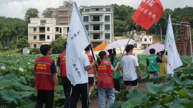 此外,突擊隊(duì)隊(duì)員還前往彭村特色產(chǎn)業(yè)蓮花池開(kāi)展實(shí)地考察,沿著池邊步道觀察蓮葉田田的景致,聽(tīng)著蓮花種植與加工的產(chǎn)業(yè)故事,深入了解彭村將生態(tài)資源轉(zhuǎn)化為文化特色的發(fā)展路徑。期間,隊(duì)員們與廣東石油化工學(xué)院“彭村竹語(yǔ)織心”實(shí)踐團(tuán)深入交流,分享各自在文化傳承、鄉(xiāng)村服務(wù)中的實(shí)踐經(jīng)驗(yàn)與心得體會(huì),在思想的碰撞中凝聚起扎根基層、奉獻(xiàn)青春的共識(shí)。