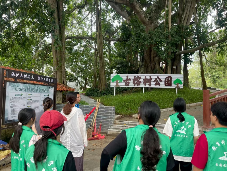 原來(lái),古榕樹(shù)公園是洪山村推進(jìn)鄉(xiāng)村振興的生動(dòng)實(shí)踐——依托村內(nèi)古榕樹(shù)群優(yōu)勢(shì),打造出集生態(tài)休閑、文化展示于一體的小公園,成為鄉(xiāng)村因地制宜謀發(fā)展的典范。隊(duì)員們沉浸式聆聽(tīng)歷史,觸摸歲月沉淀,對(duì)鄉(xiāng)村振興的“生態(tài) + 文化”路徑,有了深刻認(rèn)知,紛紛表示愿以青春之我,助力鄉(xiāng)村發(fā)展。