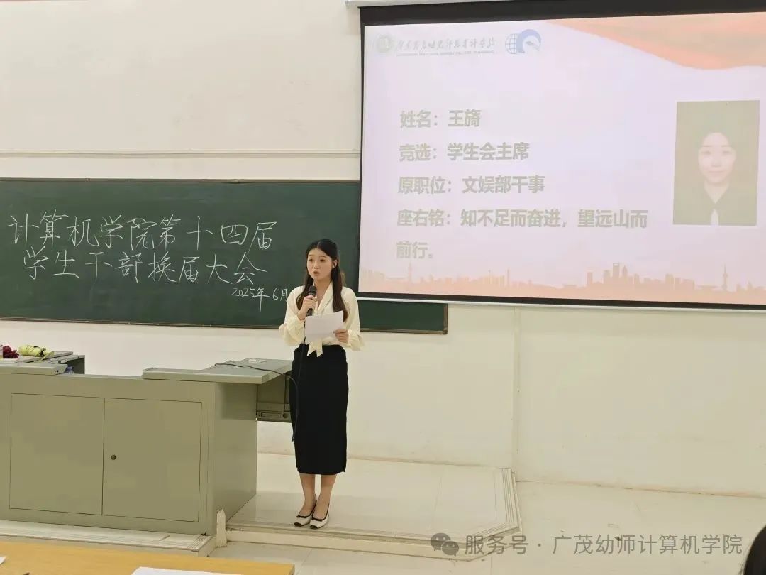 為進(jìn)一步加強(qiáng)學(xué)生干部組織建設(shè),選拔一批品學(xué)兼優(yōu)、富有責(zé)任感的學(xué)生干部,2025年6月20日,計(jì)算機(jī)學(xué)院在慎取廳召開了第十四屆團(tuán)委、學(xué)生會(huì)、青協(xié)的換屆大會(huì)。本次會(huì)議由324計(jì)網(wǎng)1班李威同學(xué)主持,計(jì)算機(jī)學(xué)院黨總支書記黎家裕、副院長(zhǎng)王長(zhǎng)清、團(tuán)委指導(dǎo)老師招雅麗、學(xué)生會(huì)指導(dǎo)老師張燕、青協(xié)指導(dǎo)老師李艷云以及全體學(xué)生干部和323、324級(jí)各班學(xué)生代表參加。