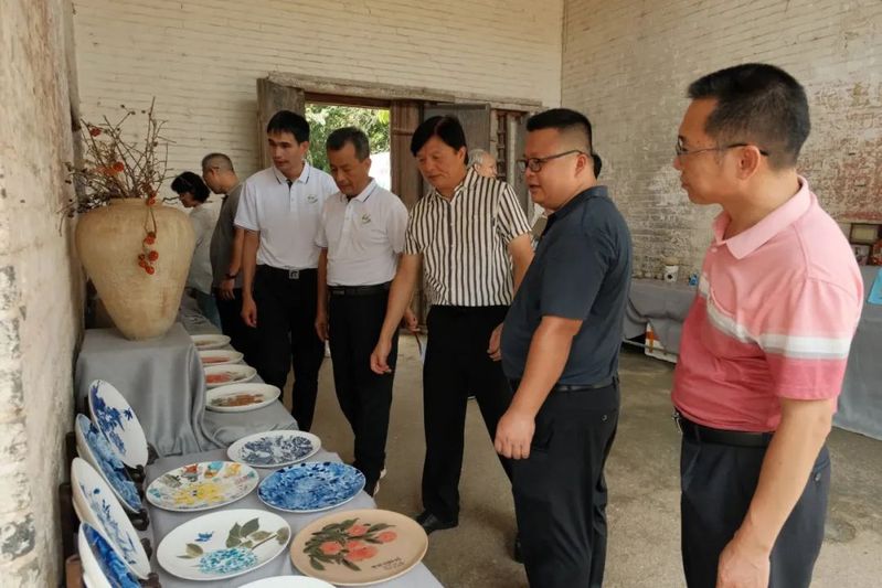 隨后,活動現(xiàn)場舉行了隆重的 “藝術(shù)鄉(xiāng)見” 三大工作室揭牌儀式。“杏花村牧童工作室”“非遺文創(chuàng)設(shè)計工作室”“陶瓷藝術(shù)工作室” 正式落戶杏花村,廣茂幼師的黃寧、林超、梁伯生三位教師作為工作室負責(zé)人,分別為其揭牌。