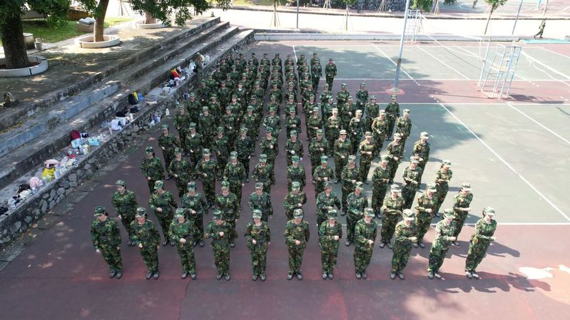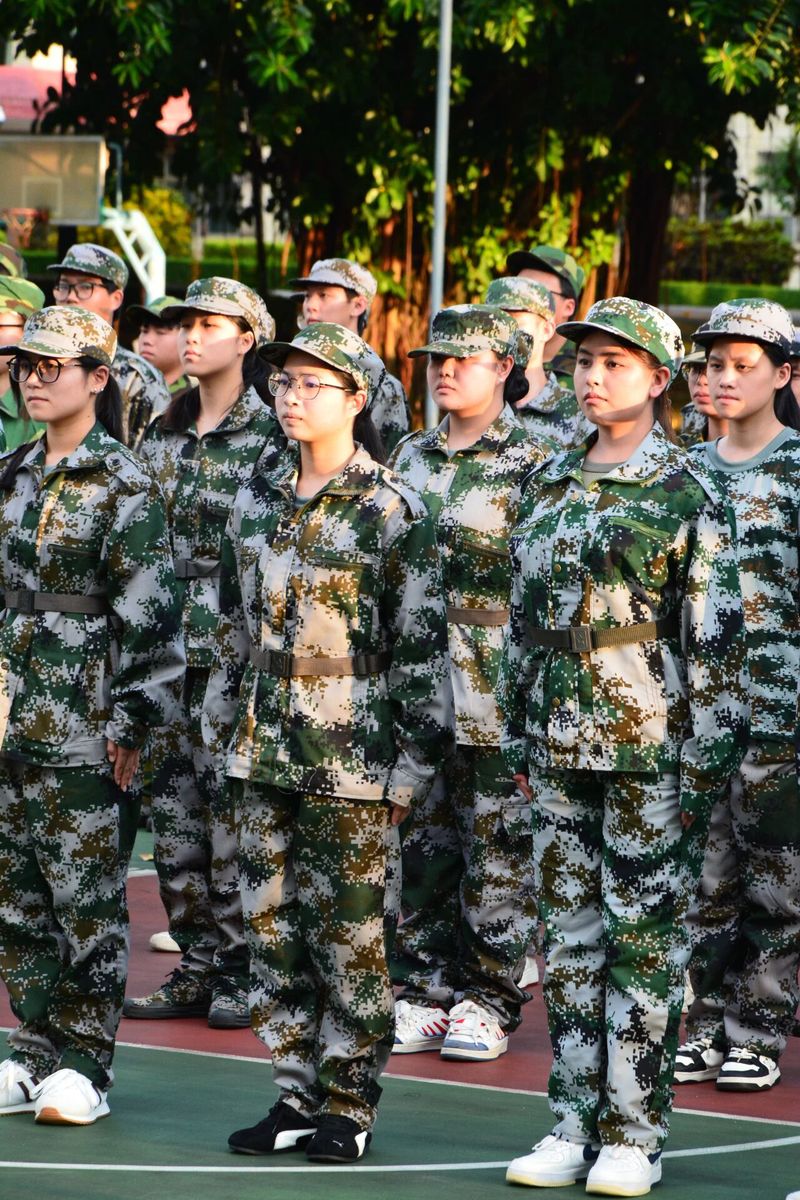 哨聲驟然響起,前一秒的歡鬧戛然而止,化作下一秒的肅靜。昂首挺胸、手貼褲縫,廣茂幼師學(xué)子在炎炎烈日下磨煉意志。