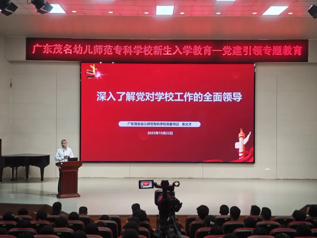 2025年10月22日,學(xué)校黨委書記余義才在茂名校區(qū)聞韶苑為2025級新生作黨建引領(lǐng)專題教育講座 。2025級新生代表和相關(guān)教師聆聽了講座。