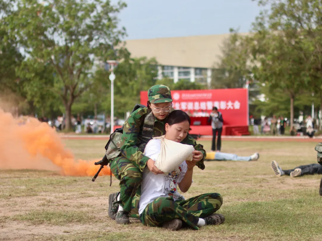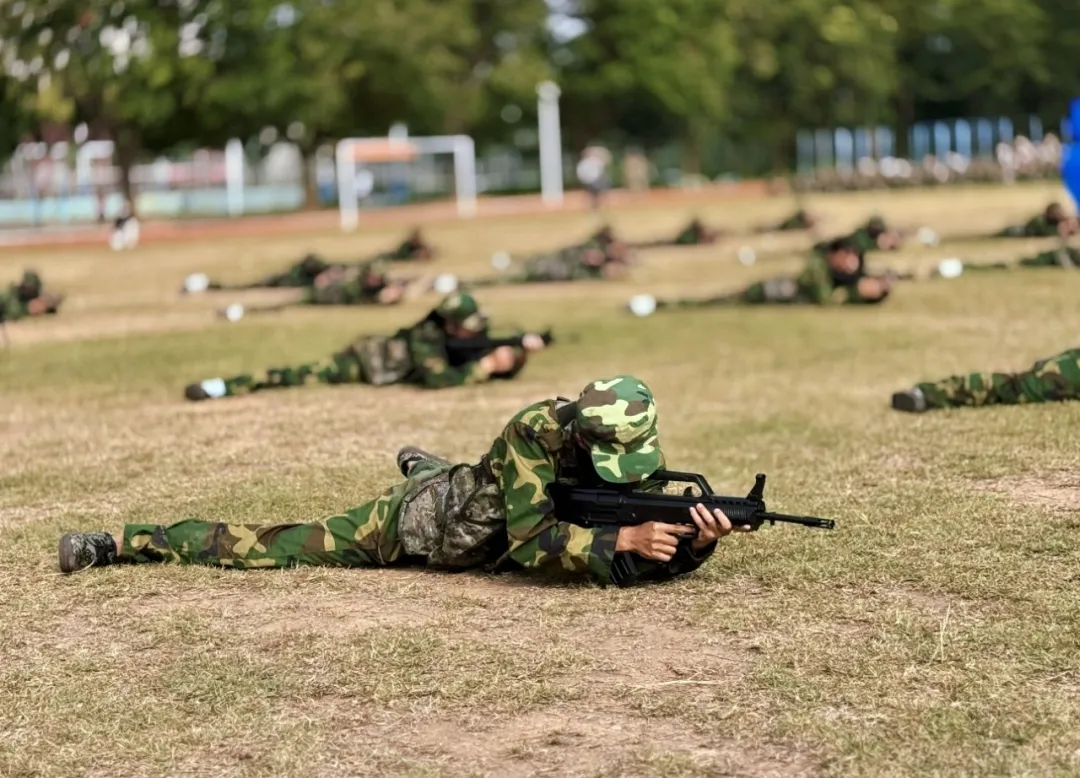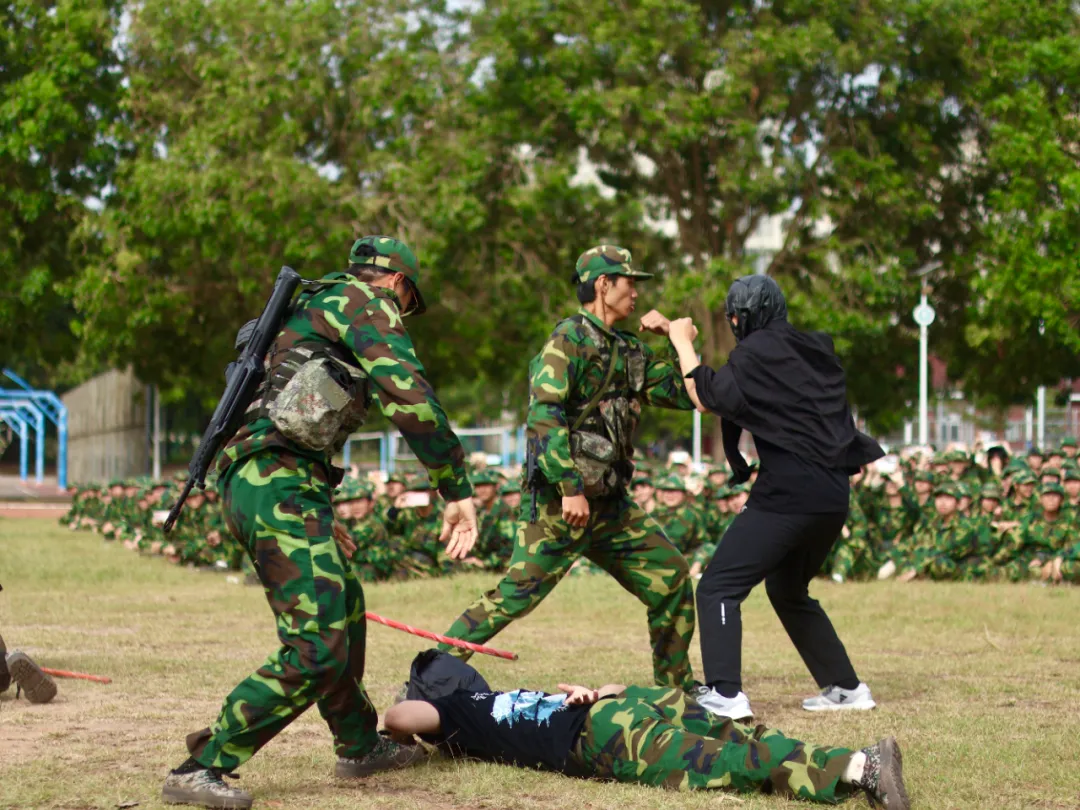 反恐救援演練:迷彩小隊(duì)如離弦之箭突入 “現(xiàn)場(chǎng)”、學(xué)子們挺拔身姿間滿是銳氣、疾跑、掩護(hù)、警戒動(dòng)作無(wú)縫銜接、默契配合 精準(zhǔn)突擊、青春熱血在默契配合中迸發(fā)