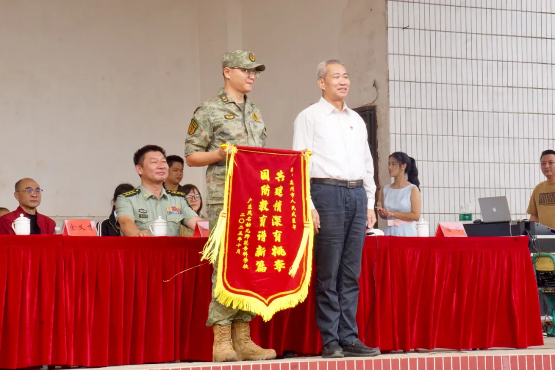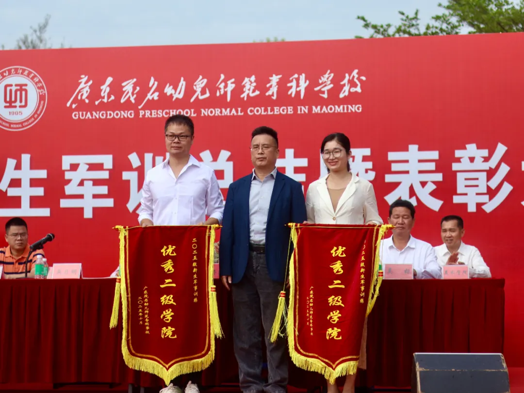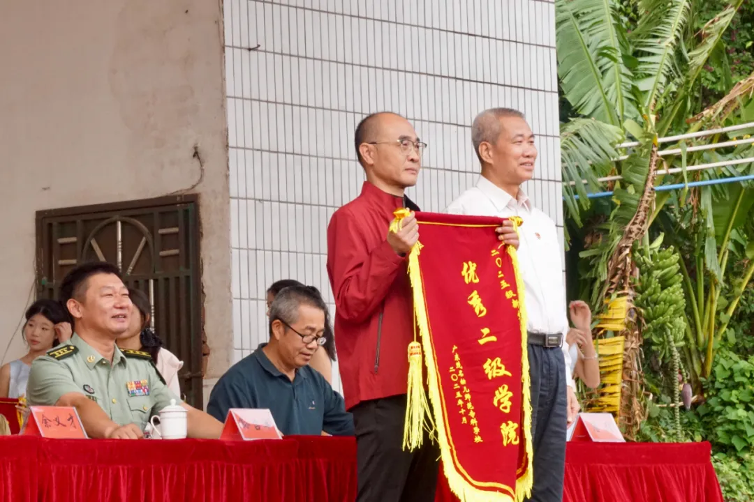 參會(huì)領(lǐng)導(dǎo)為優(yōu)秀學(xué)院、優(yōu)秀班集體以及優(yōu)秀個(gè)人頒獎(jiǎng),為高州市人民武裝部和茂南區(qū)人民武裝部贈(zèng)送了錦旗。