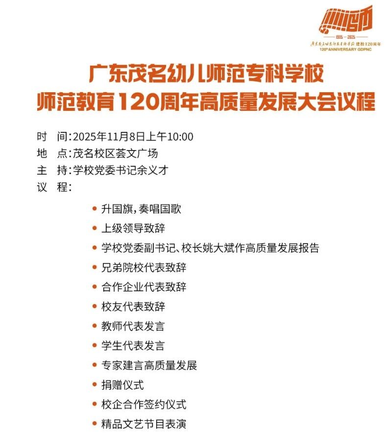 弦歌不輟,薪火相傳。廣東茂名幼兒師范專(zhuān)科學(xué)校即將迎來(lái)120周年華誕,這份校慶系列活動(dòng)服務(wù)指南,助力廣大師生校友、社會(huì)各界賓朋,共享母校百廿盛典,共賀母校百廿榮光。