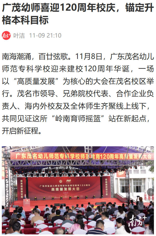 原文鏈接:廣茂幼師喜迎120周年校慶,錨定升格本科目標(biāo)_南方+_南方plus