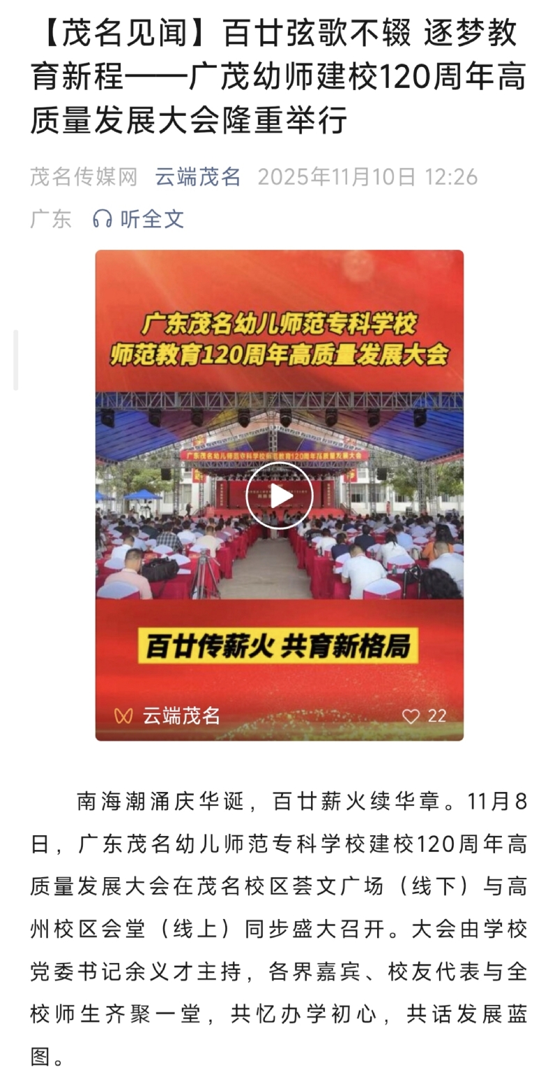 原文鏈接:【茂名見聞】百廿弦歌不輟 逐夢(mèng)教育新程——廣茂幼師建校120周年高質(zhì)量發(fā)展大會(huì)隆重舉行